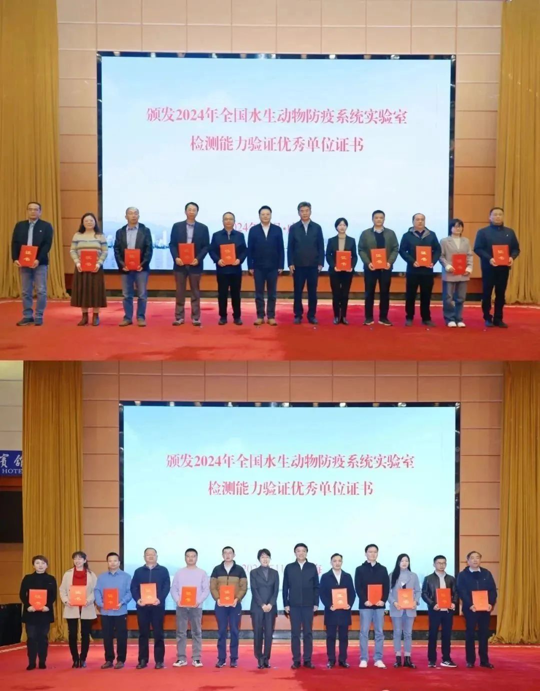 颁发2024年全国水生动物防疫系统实验室检测能力验证优秀成绩单位证书